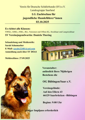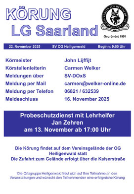 Termin Wesensbeurteilung der OG Bergweiler-Sotzweiler wird vom 06.12.2025 auf Sonntag, 14.12.2025 verlegt. Alle anderen Daten zur Veranstaltung bleiben gleich.